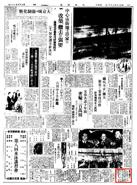 The copy of the article I could obtain from the Korean newspaper Dong-A Ilbo (Korean: 동아일보, Hanja: 東亞日報, literally East Asia Daily) dated July 11, 1937 describing this event is very bad and mostly illegible. But according to Jung/Liu/Shishida in the Journal of Martial Arts Anthropology (Vol. 15, no. 3, 2015) who dug out the article in the first place, Funakoshi in July 1937 together with 11 students of Takushoku University (拓殖大学) gave a karate demonstration in the Gyeongseong Bumingwan (京城府民館), a multi-purpose building in Seoul. According to Jung Kyungwon (2016: 78) the text reads “The Japan Butokukai Korean Regional Headquarters invited the Takudai Karate Club to hold a karate demonstration at the Gyeongseong Bumingwan. Master Funakoshi and the 11 members of the Takudai Karate Club will demonstrate the essence of karate and introduce it to the general public.”