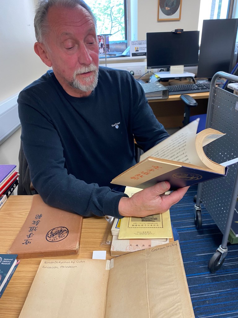 Graham Noble was born in 1949 and became interested in karate and its history in the mid-1960s. Seeing that reliable information on the martial arts, especially karate, was scarce, Graham set about gathering books—many of them originals—and magazine articles. As karate’s popularity increased, his collection expanded to include clippings, correspondence, notes from conversations, photographs translations from Japanese, and interviews with leading figures of the art. Over the years, he also assembled material on related fields such as jūjutsu, self-defence, wrestling, and the traditions of weightlifting and old-time strongmen. The result is an extensive archive comprising hundreds of books and more than two hundred lever-arch files, carefully organized