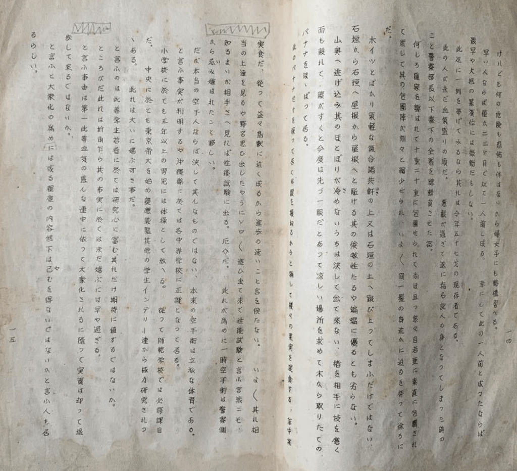 Handwritten historical sources on karate are exceedingly rare. Whenever one surfaces, it electrifies the karate world—especially the small circle of karate historians. One need only recall the unique book by Kyan Chōtoku (1870–1945), discovered some time ago, translated by Patrick McCarthy, and later made accessible as part of an anthology on the master in 2023.